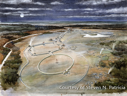 The cutaway of the earthwork, at the very beginning shows 4 different colors of dirt (the different shades of brown are subtle) and the dirt was layered horizontally. The number FOUR is significant due to the fact that there are 4 cardinal directions—north, south, east, and west, 4 elements –fire, air, water, and earth, four seasons and 4 segments to a medicine wheel.